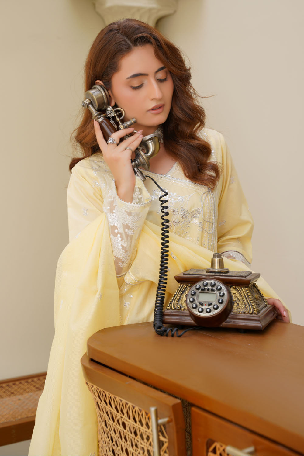 - 3 Piece embroidered cotton Lawn Angrakha Suit