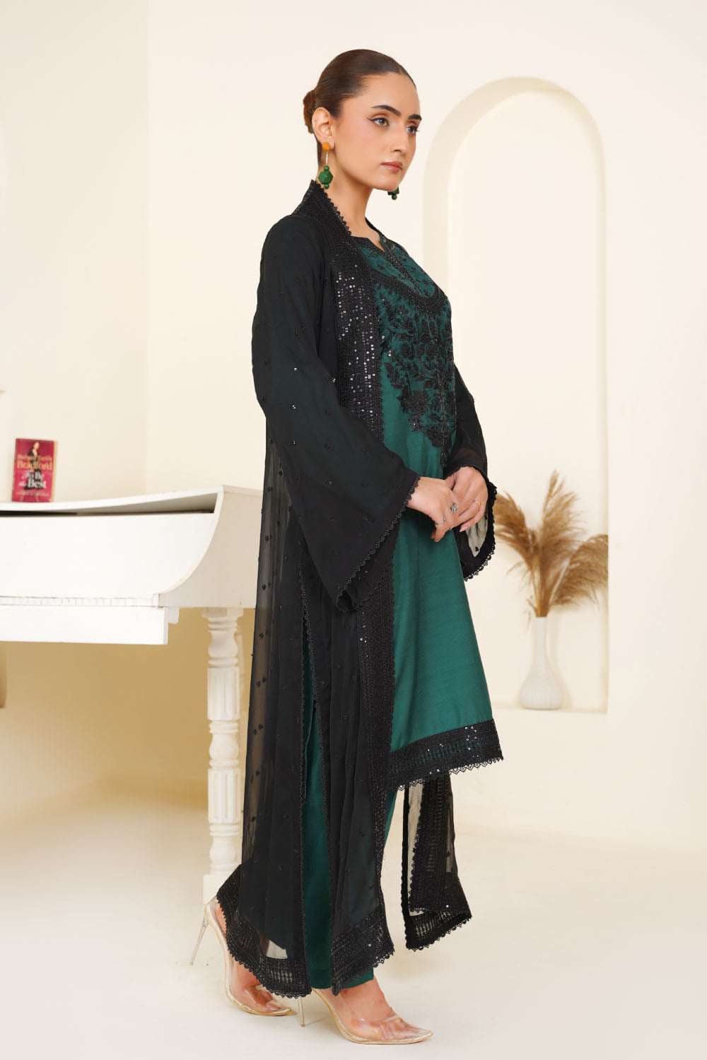 - 3 Piece heavily seqiun embroidered viscose Suit